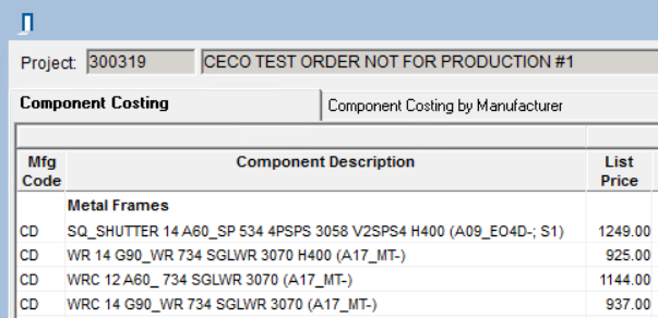 WR, WRC, SQ SHUTTER Validated and priced as shown below.