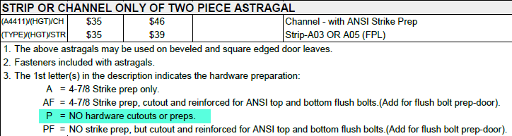 Astragals ordered with door have been modified without hardware preps. Preps will be applied based upon preps applied to door