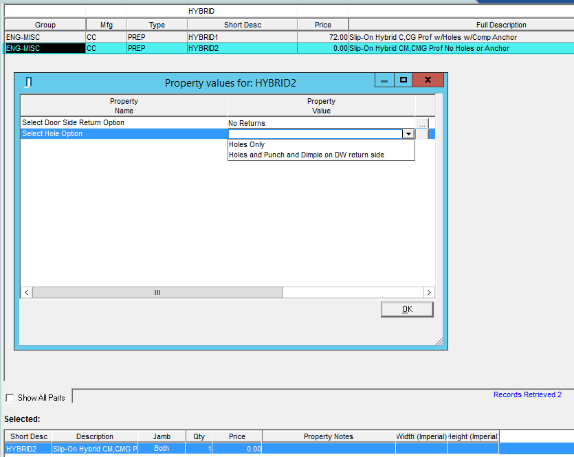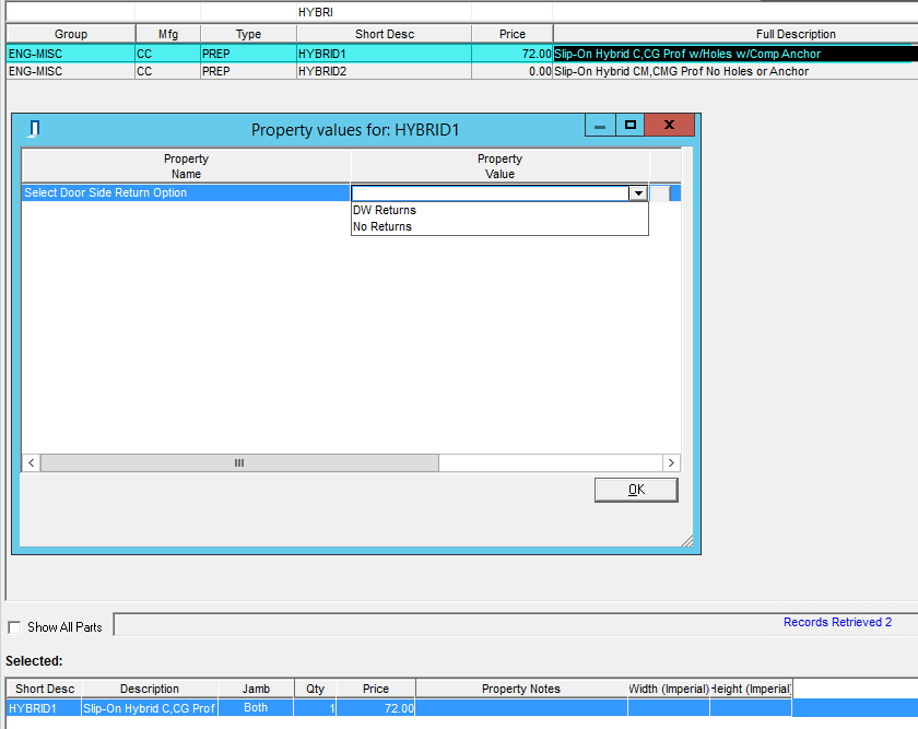 HYBRID1 – Must select Door Side Return Option – For use with C and CG profile frames – List Price Add $72.00
