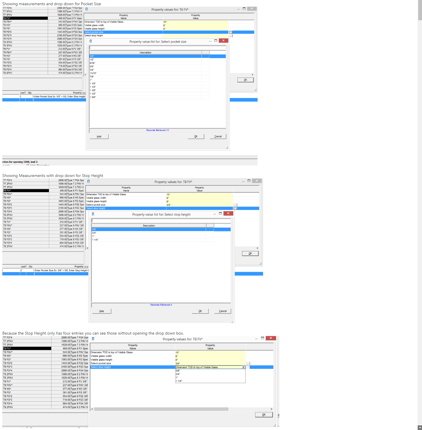 Added Type 8 lite kit properties for pocket thickness and stop height