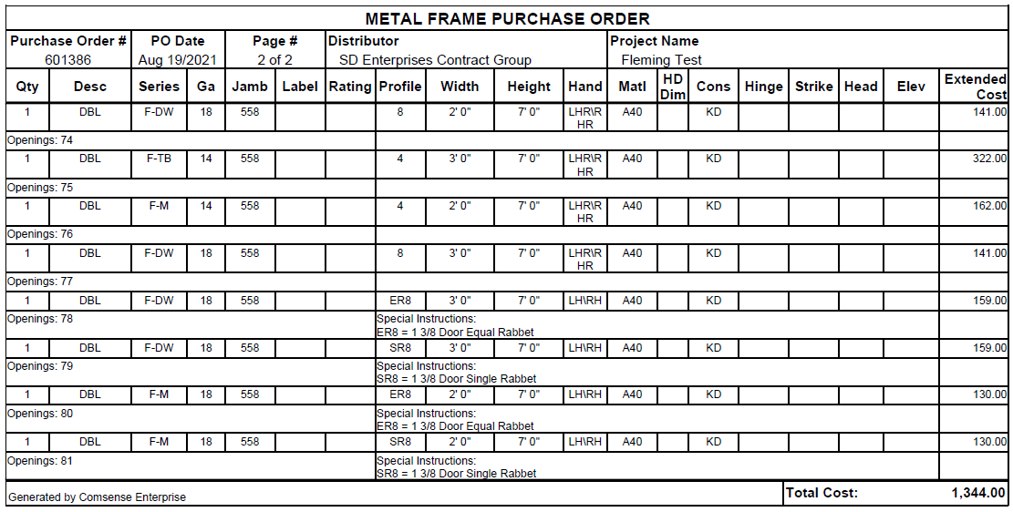 Added 14GA G90 call for pricing. Fixed CO KD and Stick. Added 1 3/8 (8) to F-M Profile All frames tested validated, priced, sourced and applied to PO