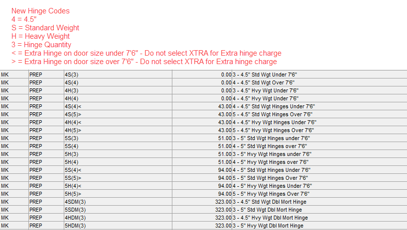New hinge prep codes for doors and frames: