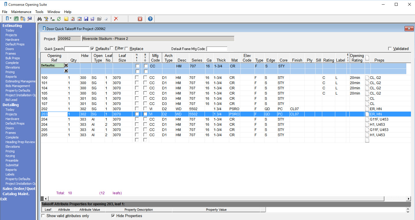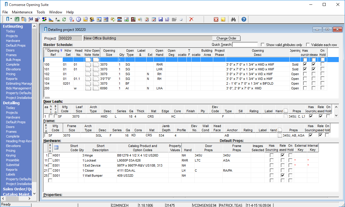 - Heading builder generates headings based on a customizable collection of attributes including hardware set, door, frame, and opening information.