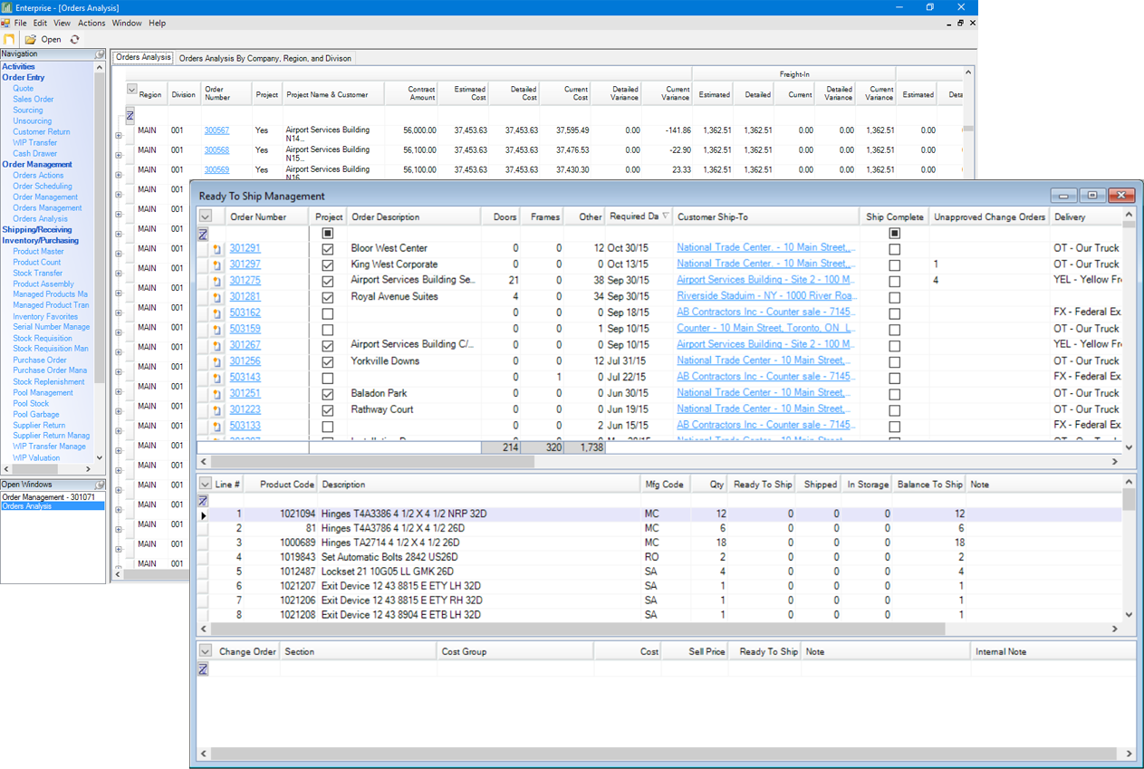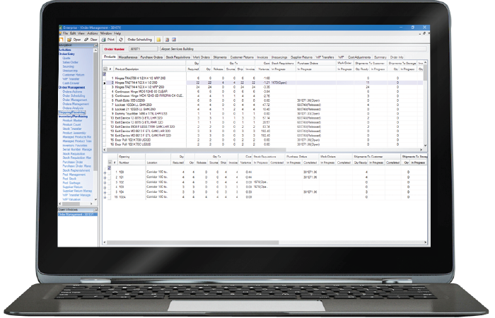- Powerful management windows provide an overall picture, with drill-down capabilities, of the projects and orders flowing through your business. They can also alert you to potential problem situations so you can take corrective action proactively.