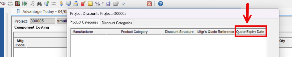 Quote Expiry Date field added to the Project Discounts Window and the Purchase Order Window