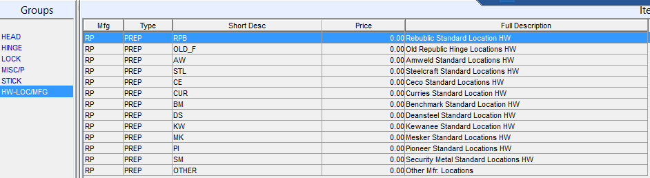 Added new groups for doors and frames as HW preps that can now be applied to default preps