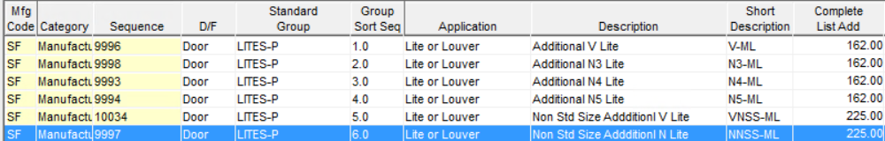 Partial Update – Oct 2019 – 12GA Stick, Lite Preps to add to doors with deszigner lites to create mulitple light doors. V, N3, N4, N5, V & N Special Size.