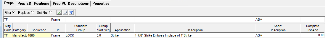 Add 4 7/8 ASA embossed strike prep in lieu of T strike